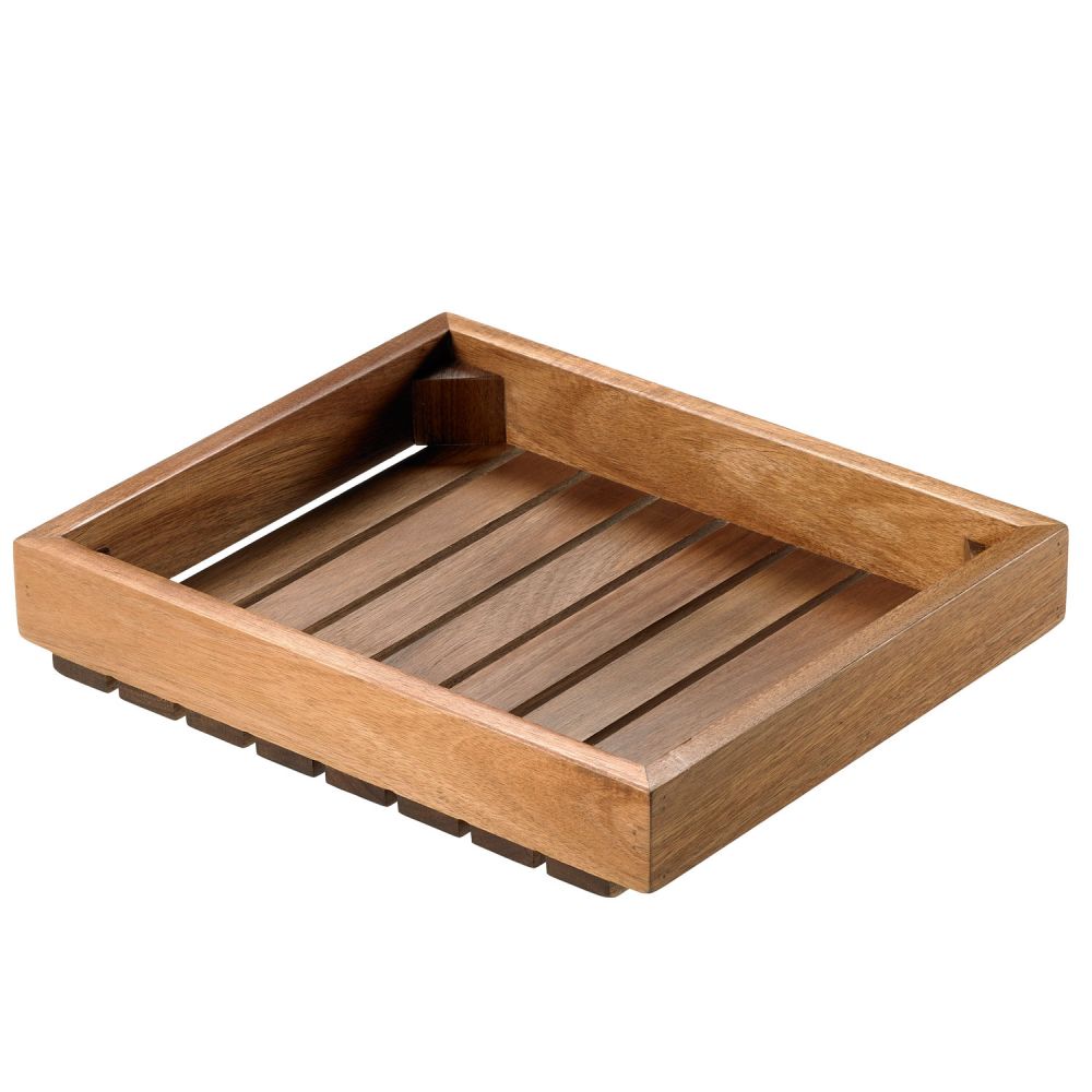 Acacia closed stand Double face cm.36x30 Double face. Match with tray GN 1/2. Modular system to create your buffet and decorate your spaces. It includes 6 Acacia open or closed components matching with black melamine gastronorm trays with whom you can create and personalise your buffet in the measure & sizes according to your wishes.