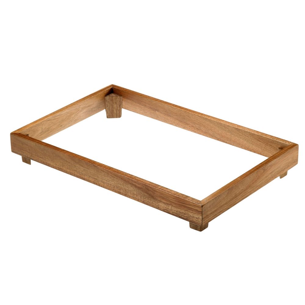 Acacia open stand Double face cm.56x36x7,7h. Double face. Match with tray GN 1/1. Modular system to create your buffet and decorate your spaces. It includes 6 Acacia open or closed components matching with black melamine gastronorm trays with whom you can create and personalise your buffet in the measure & sizes according to your wishes.