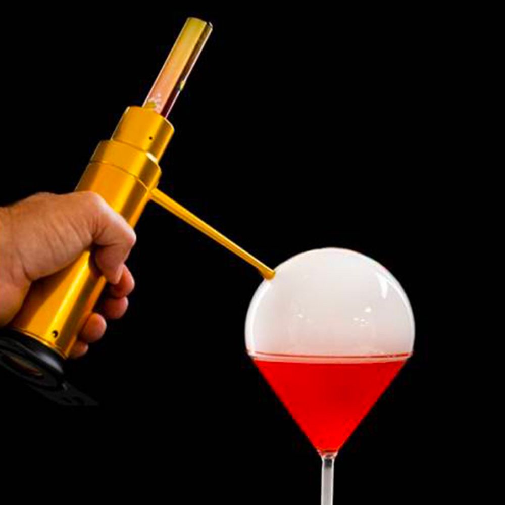 This is a steam creation gun for flavoring foods or creating edible smoke bubbles to serve in plates and glasses