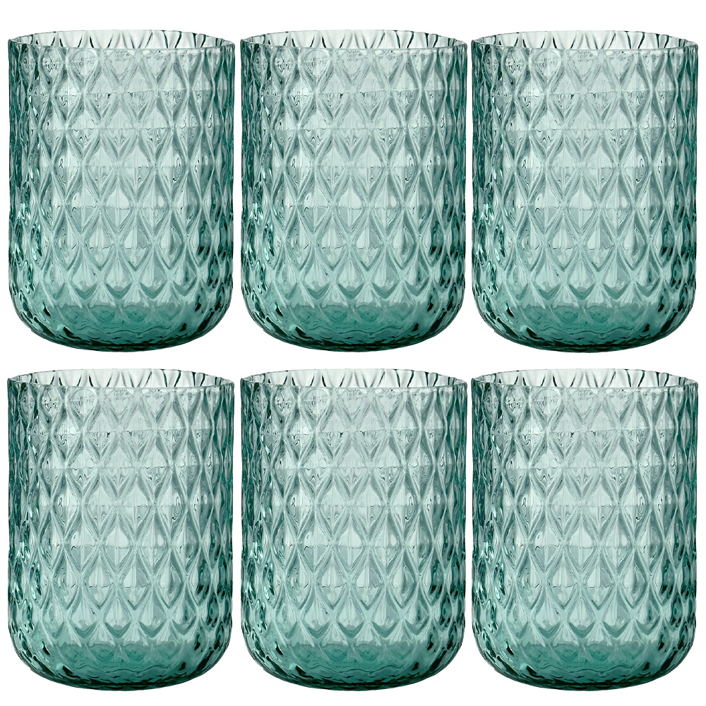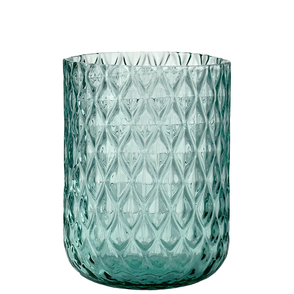 Made of hand-blown glass, these tumblers combine the artisanal delicacy of the material with a textured surface that captures and reflects the light, creating a luminous and refined effect.