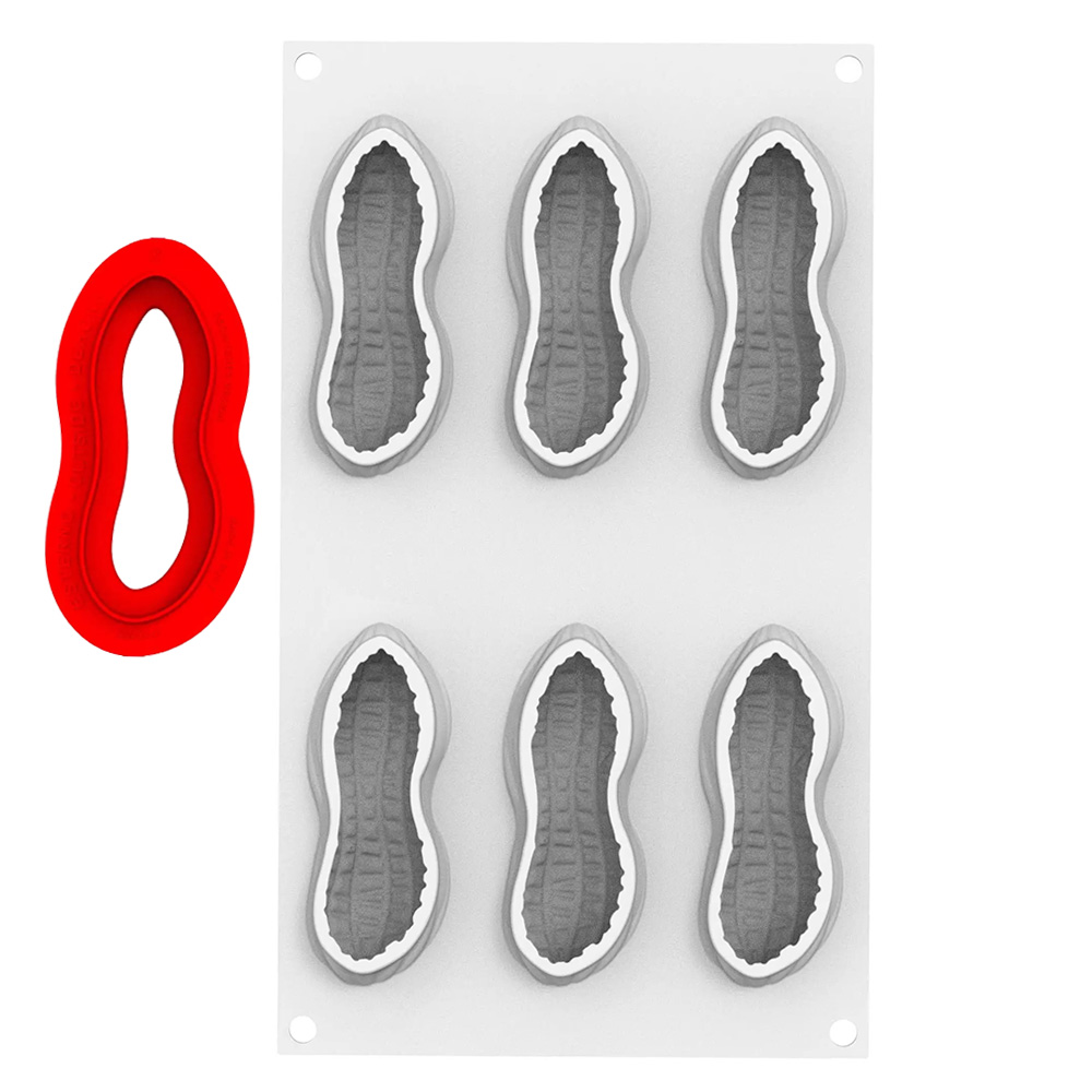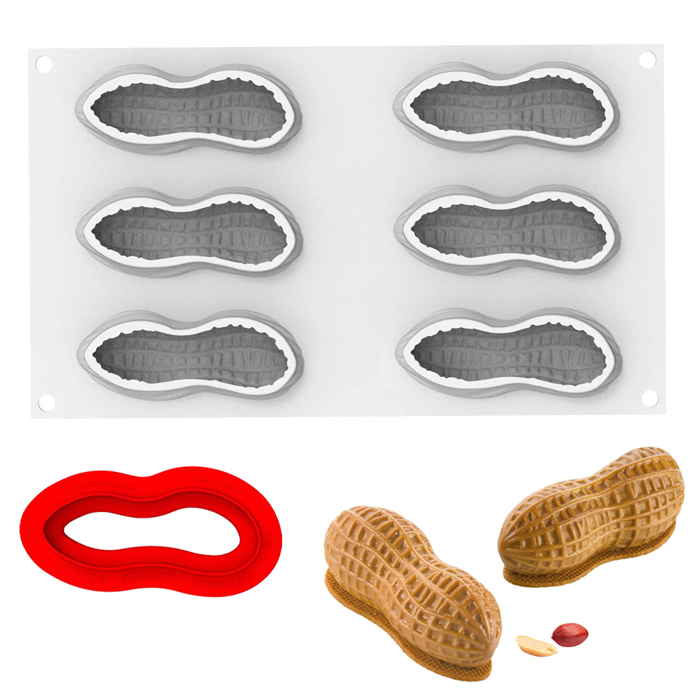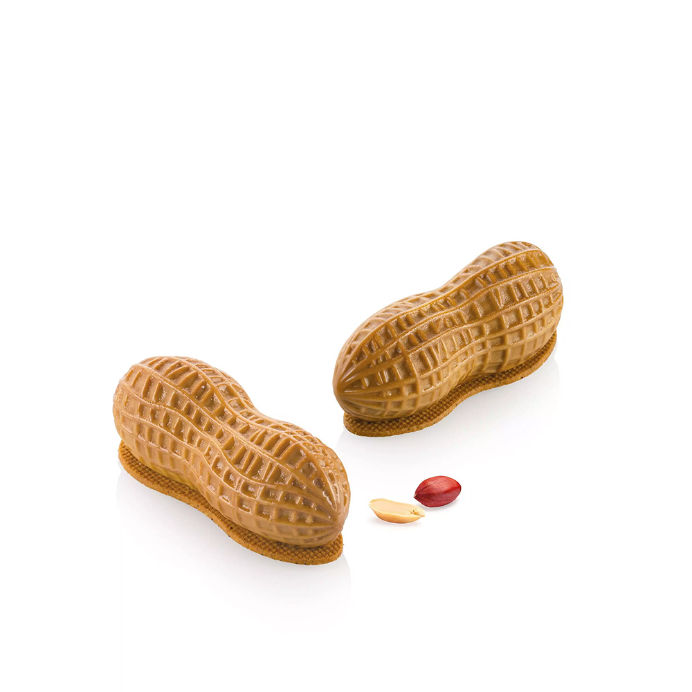 The kit includes a platinum silicone mold to create single-portion peanut shapes and an ABS cutter for shortcrust bases and custom inserts.