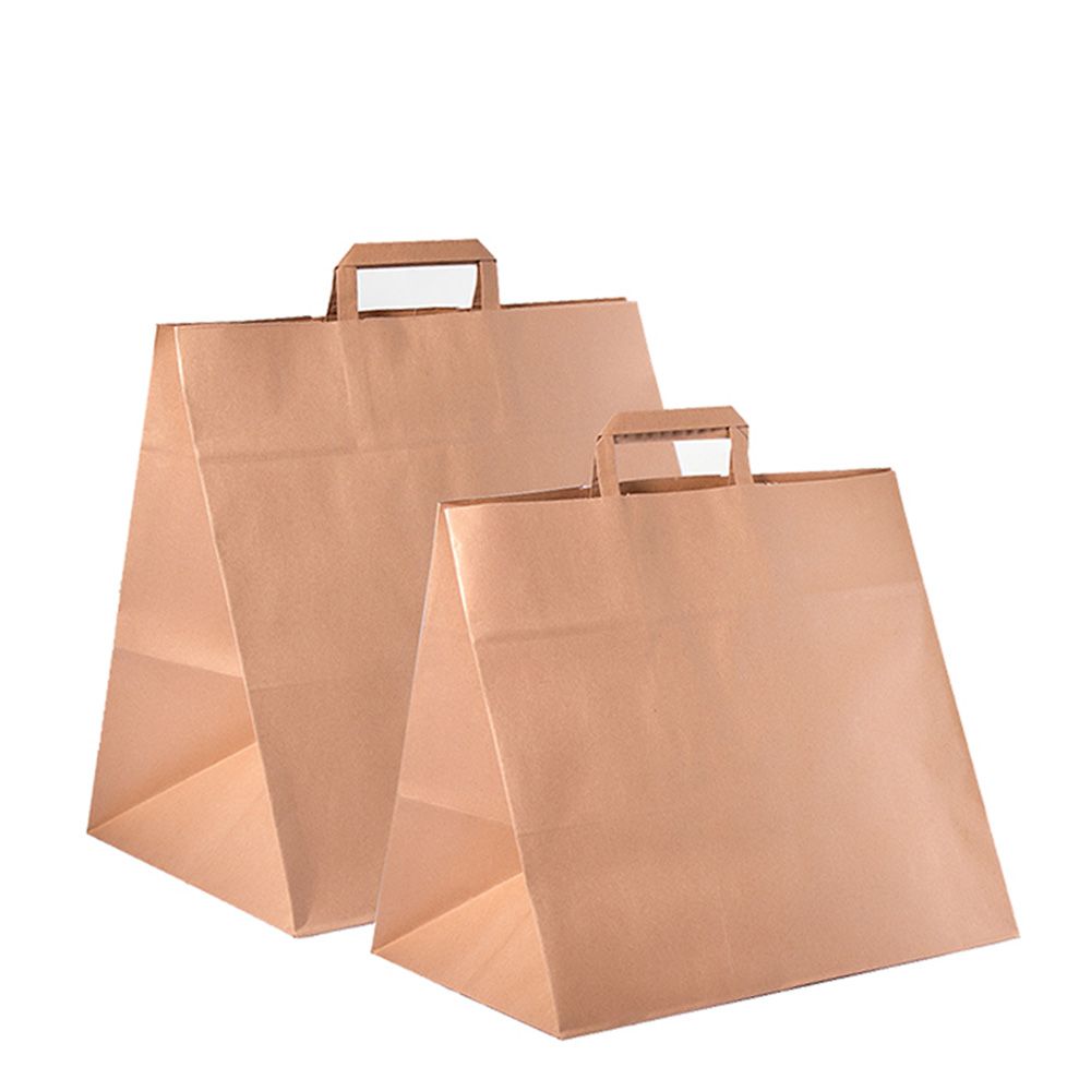 Shoppers in 70 gram havana paper with a reinforced flat handle and side gusset in various formats that make them adaptable to various uses.
