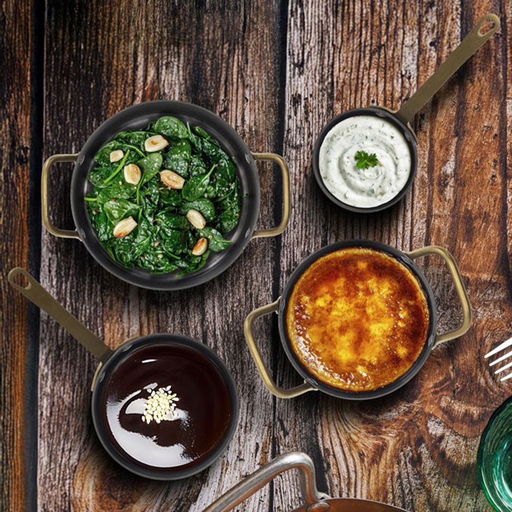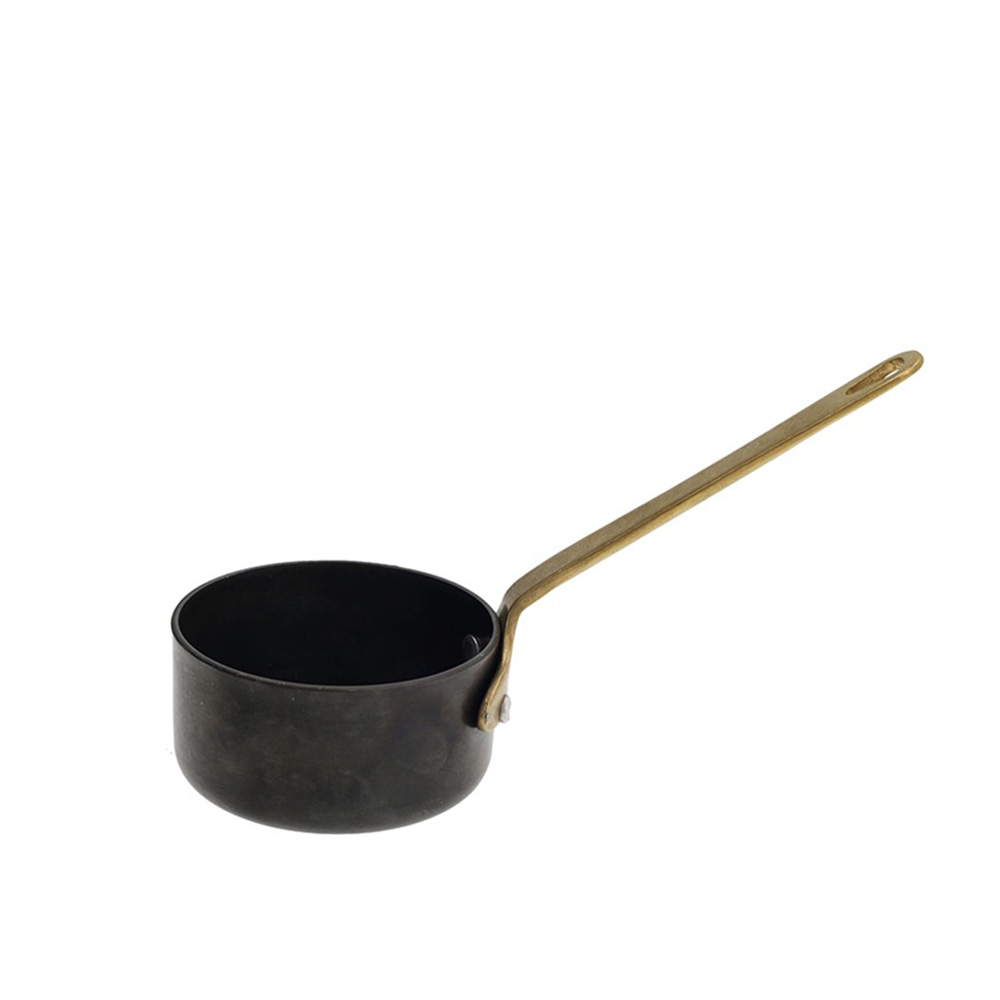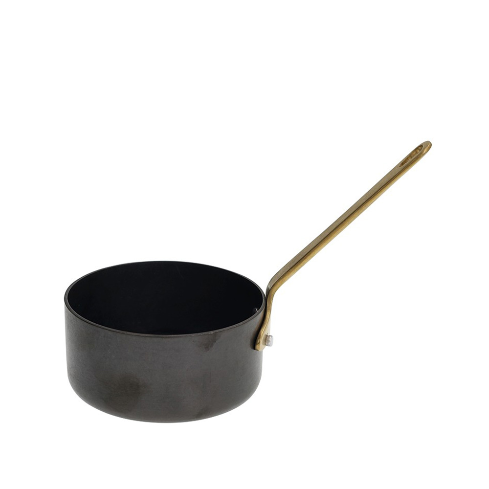 Black casserole dish with 1 gold handle. Available in 2 sizes: 8 cm and 10 cm