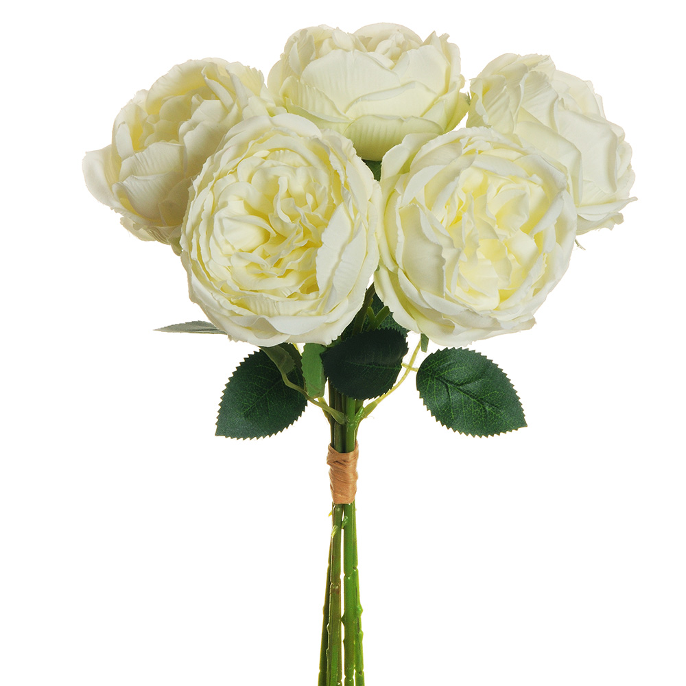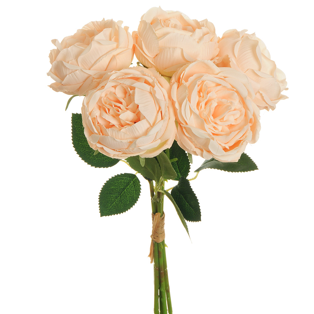 Bundle of 5 artificial peonies with leaves, made of polyester and PVC Height: 38 cm Available in cream and salmon