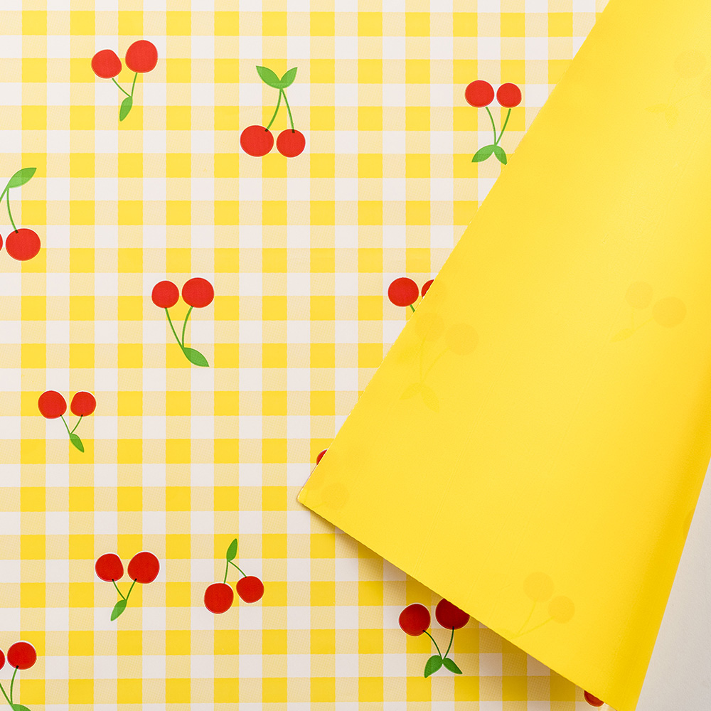 Cherry Roll, printed polypack on both sides Size: cm 100 × 25 m – thickness 40 my Available in yellow and green
