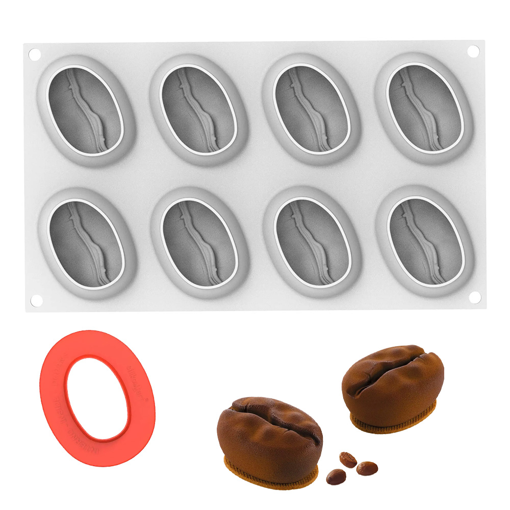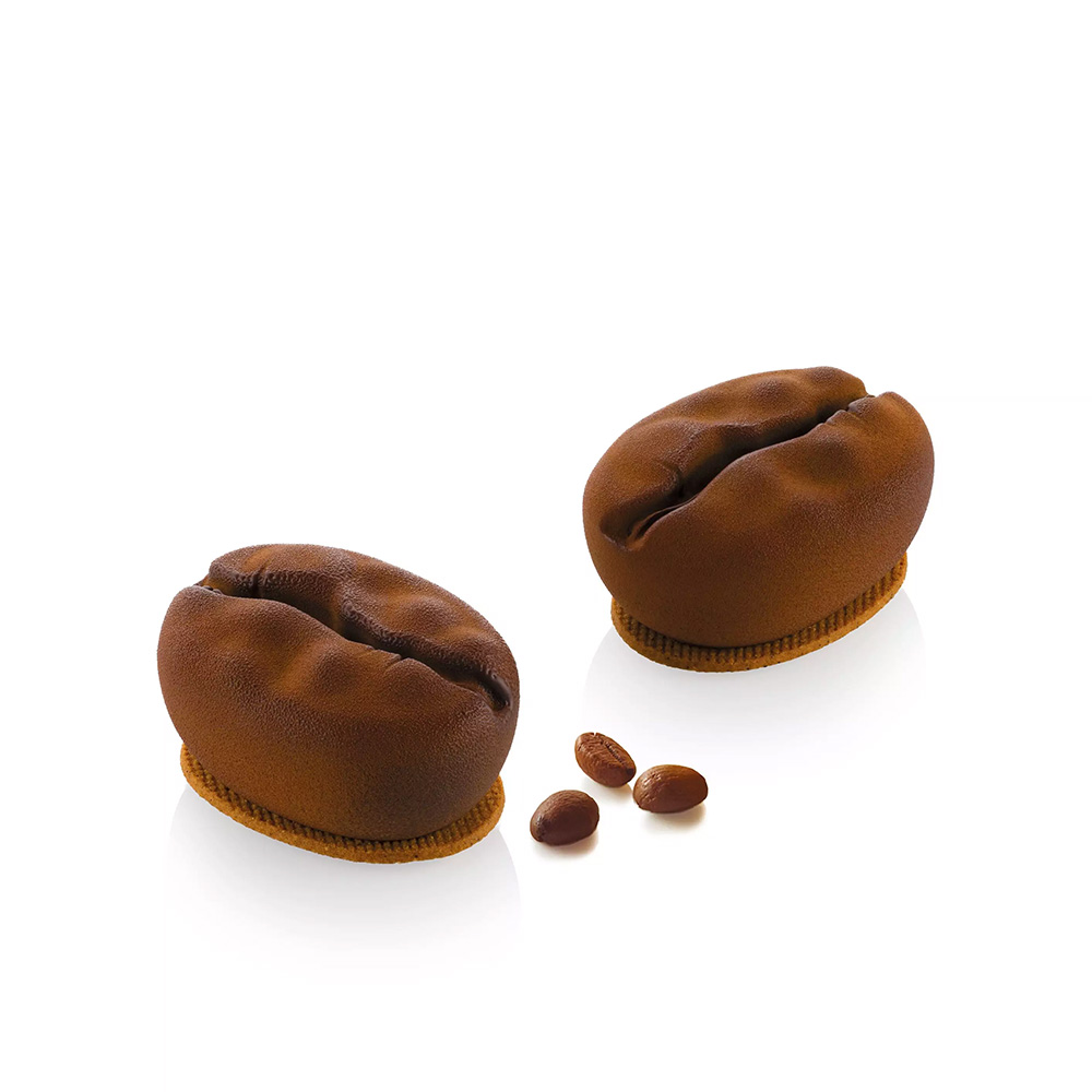 The kit includes a platinum silicone mold to create coffee bean-shaped single-portions and an ABS cutter for shortcrust bases and custom inserts.