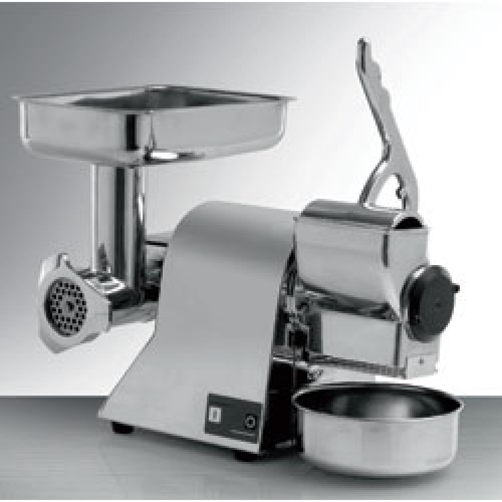 Combo meat mincer & grater 60 - Output mouth dimensions: Ø 60 mm - Loading meat inlet dimensions: ø 52 mm - Grating roll mm.60x110 - thermal protection included - Standard plate Ø 6 mm - Stainless steel mincing unit - 0,38 Kw (0,5Hp) - 230V-50Hz (single-phase)