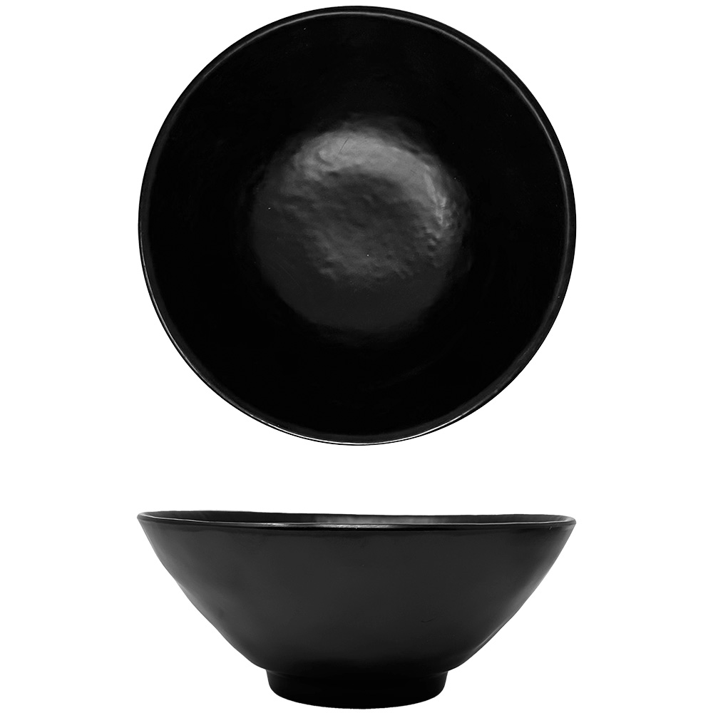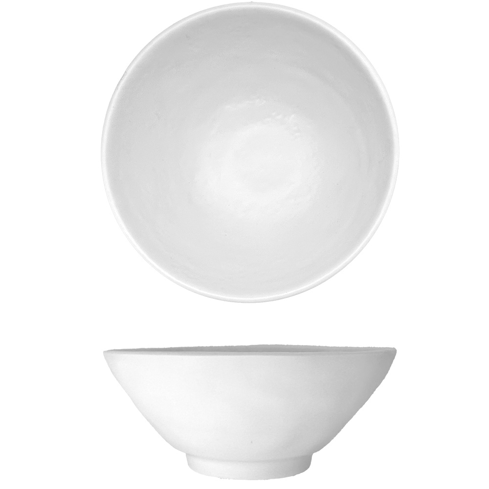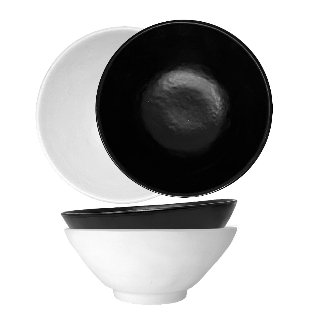 Available in white and black, this cone-shaped melamine bowl combines simplicity with contemporary design.