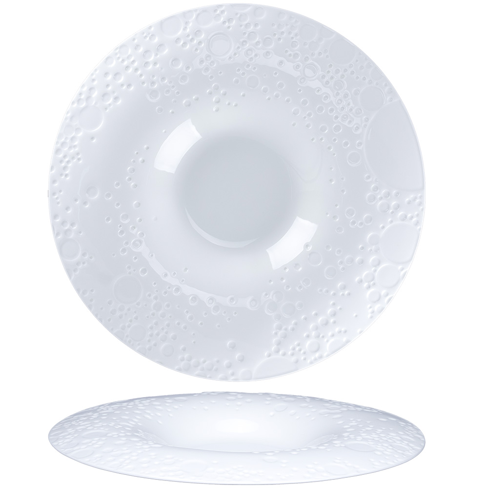 Deep bubbles Feelings plate in bone china.