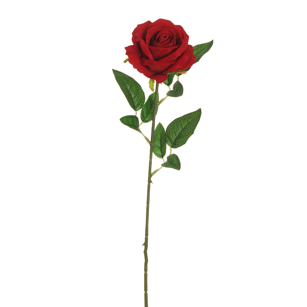 Elegant red rose in velvet with leaves Dimensions: 62.5 cm height