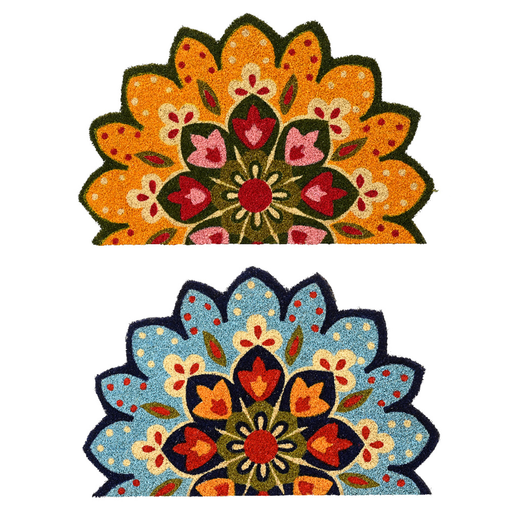 Flower-patterned coir doormat, rubber backing