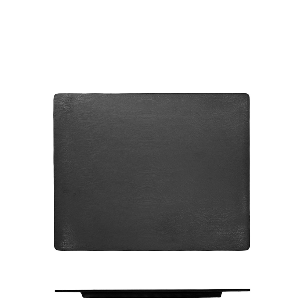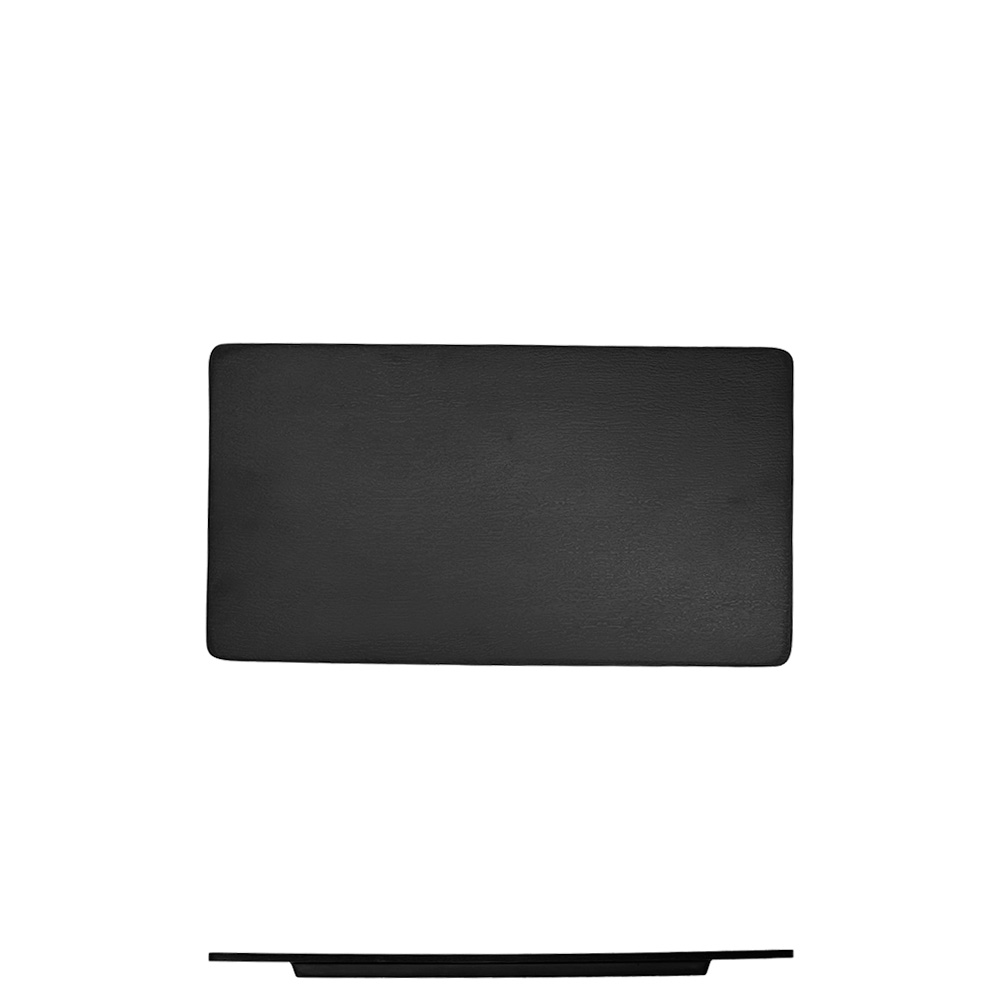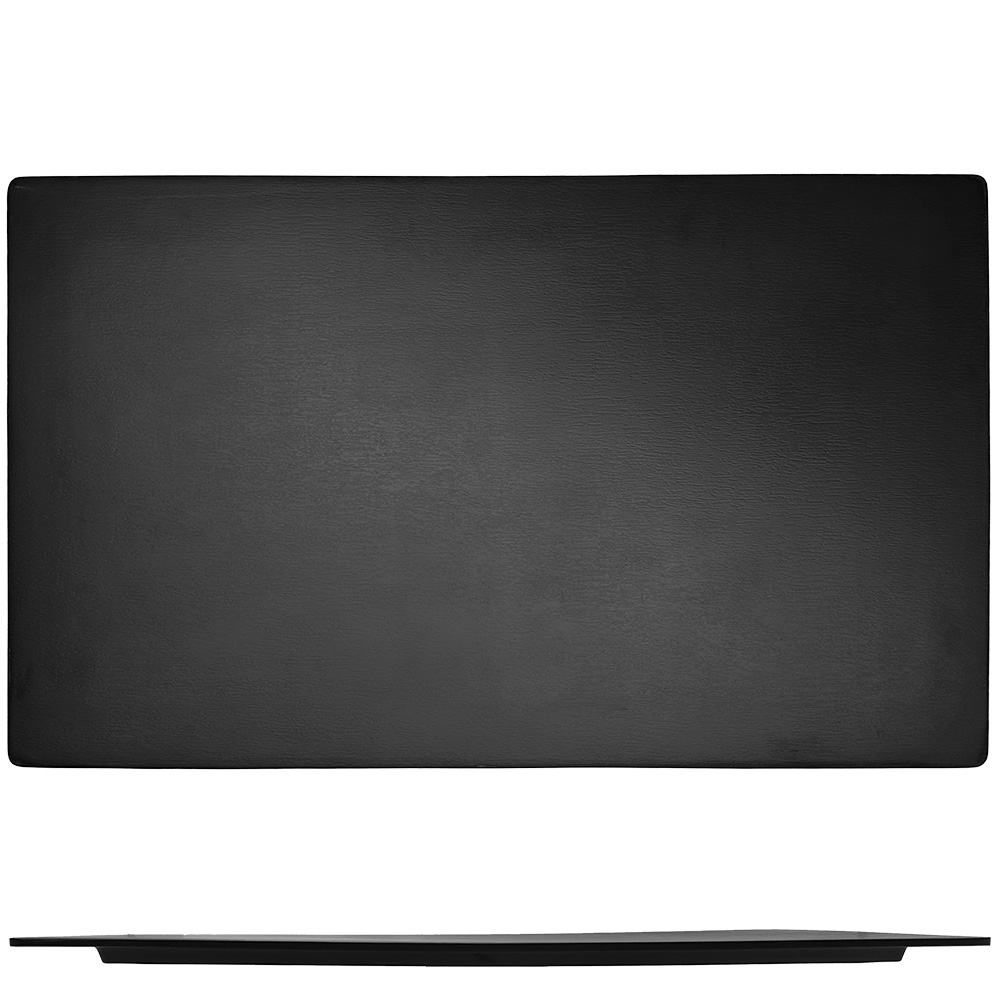 Black melamine plates and trays with a refined slate effect, ideal for professional service without compromising on style.