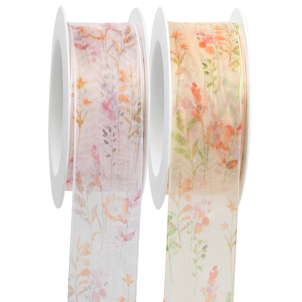 Garden ribbon in printed polyester fabric dim. 40 mm x 15 m