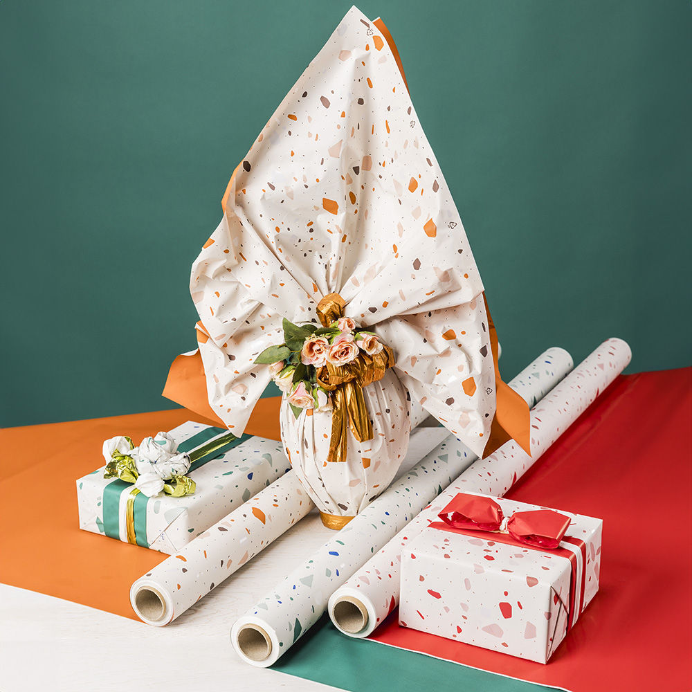 Graniglia Roll, printed polypack on both sides Size: cm 100 × 25 m – thickness 40 my Available in orange and teal