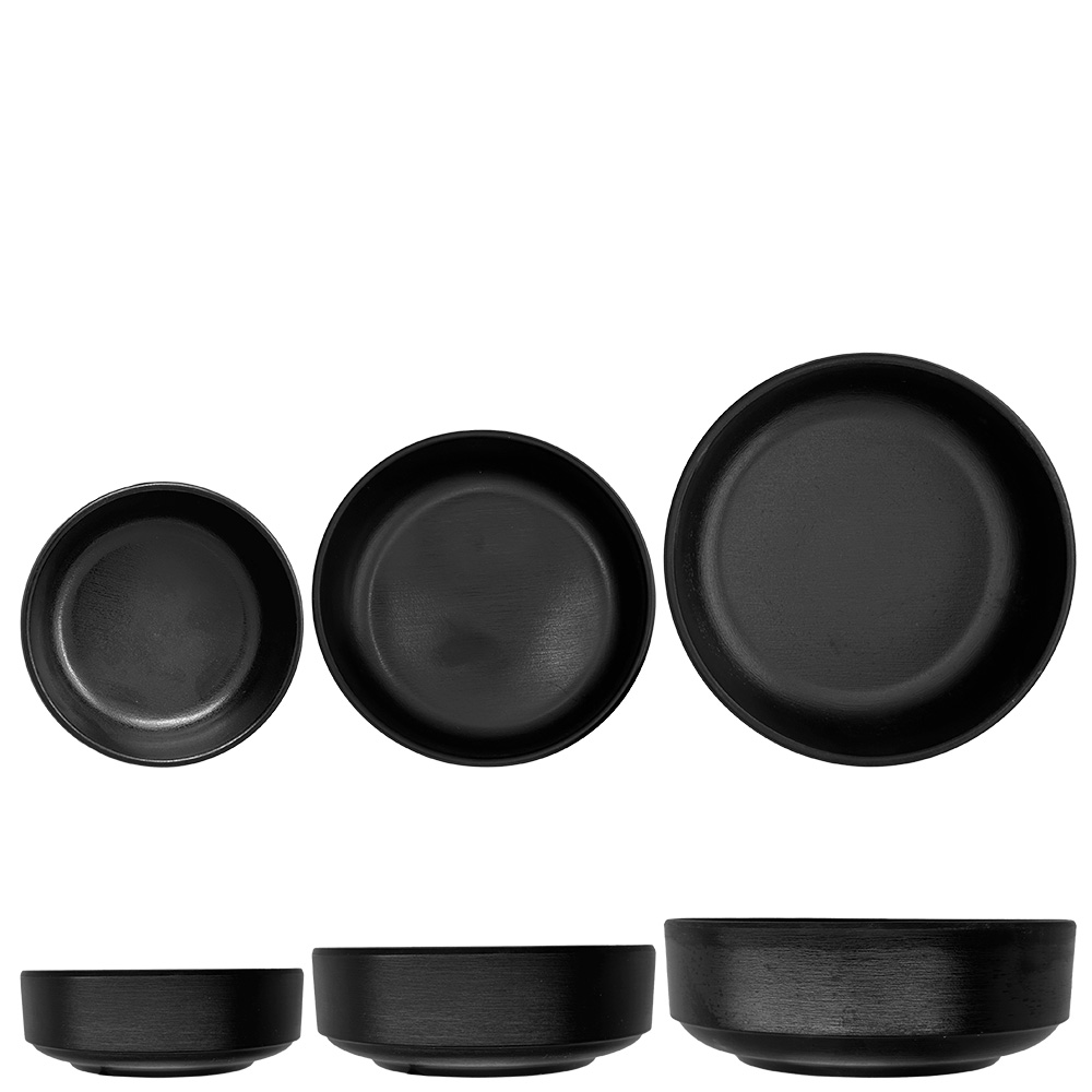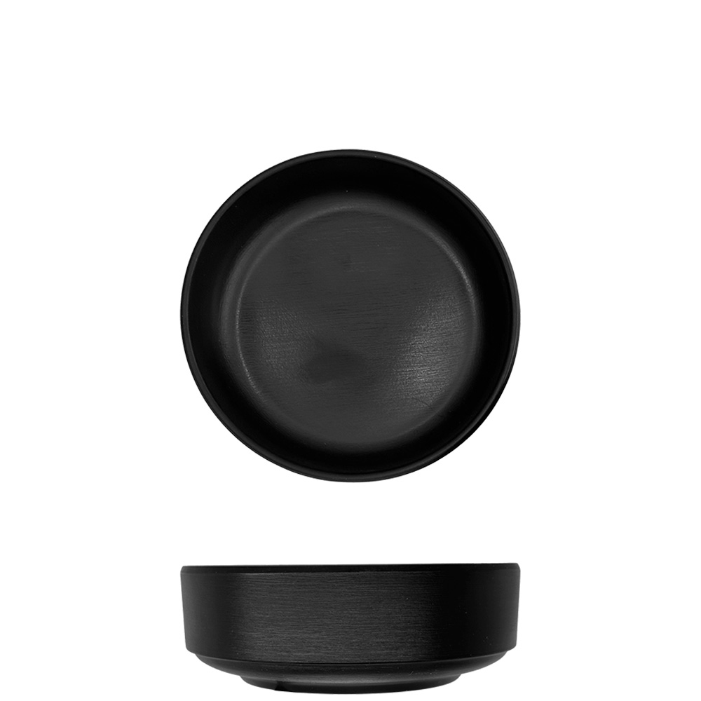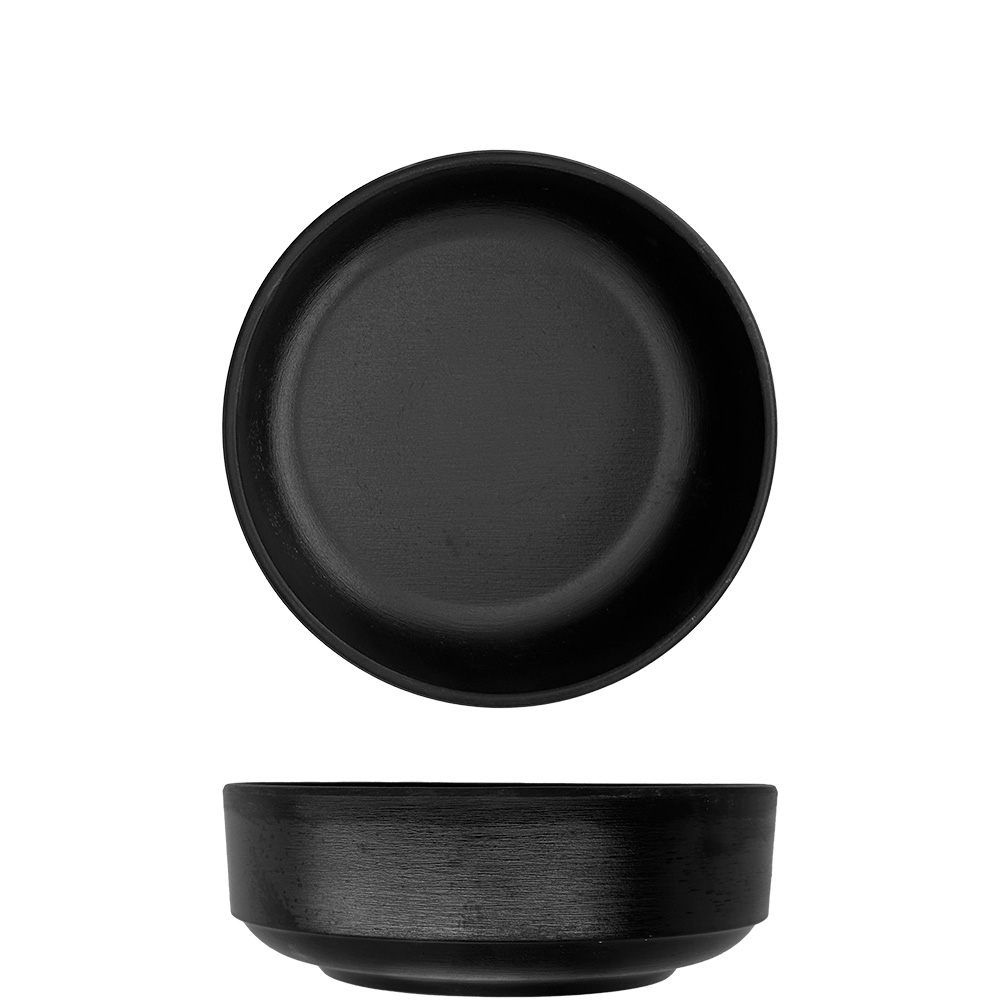 Low stackable cup in matte black melamine