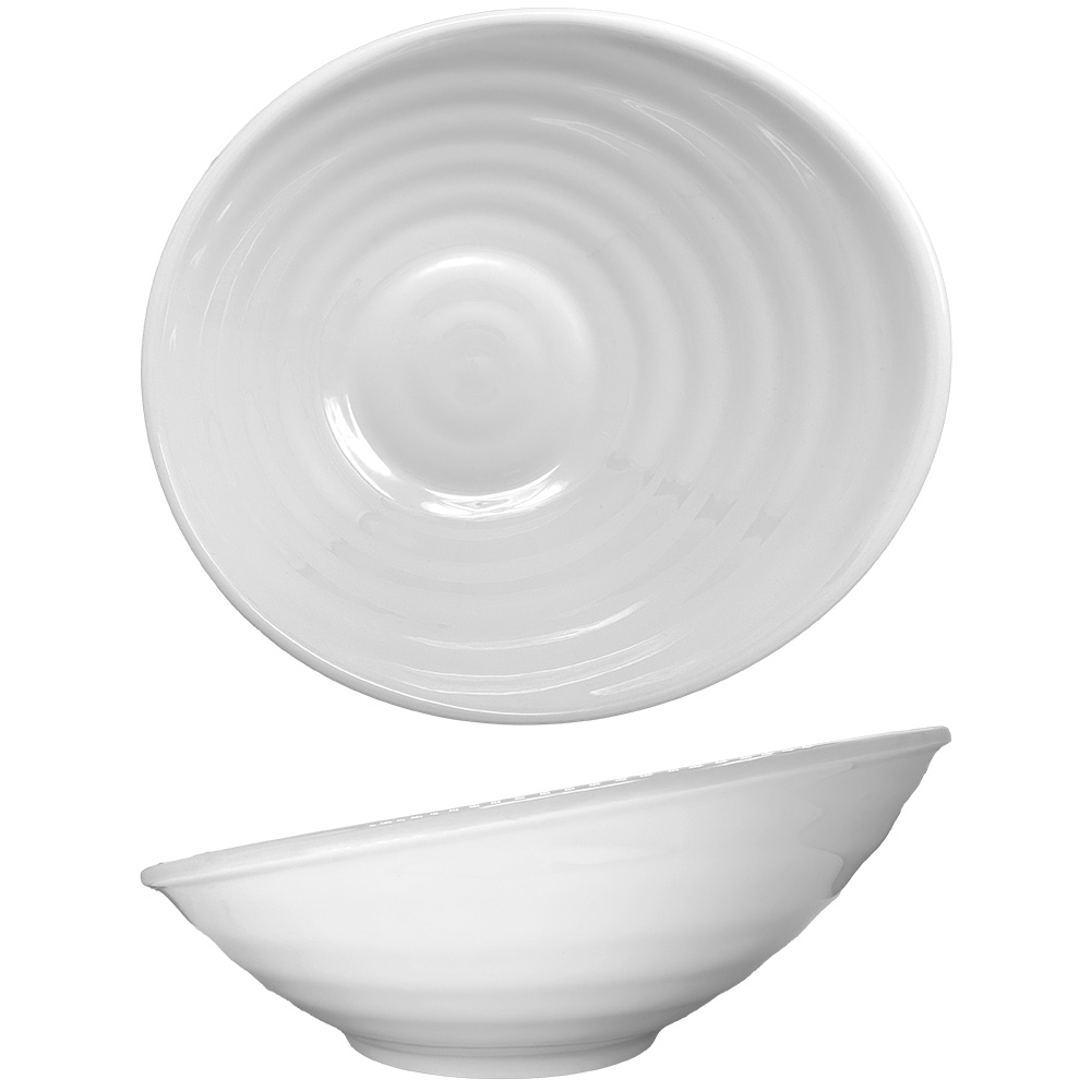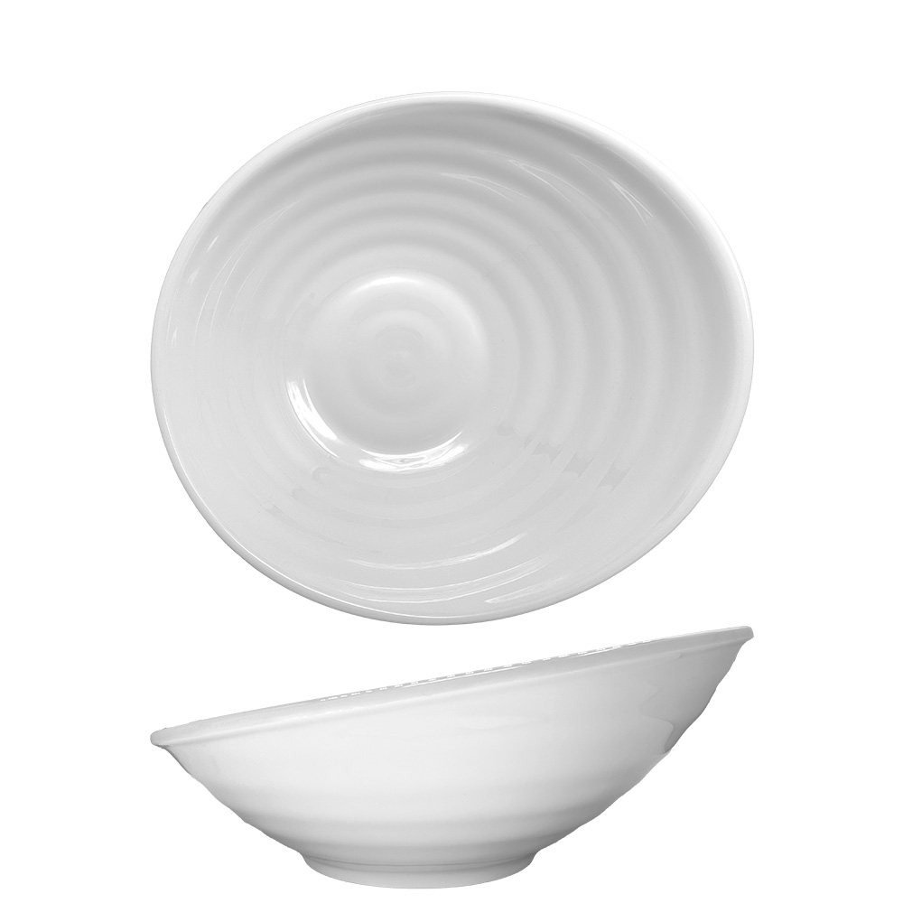 With its contemporary and refined design, this oblique melamine bowl stands out for its smooth lines and decorative groove, adding a sense of movement and style to any setting.