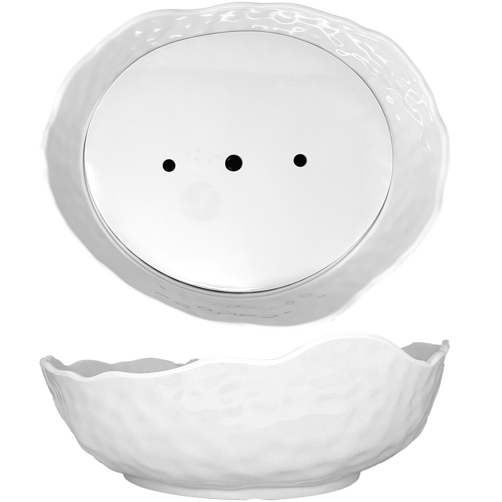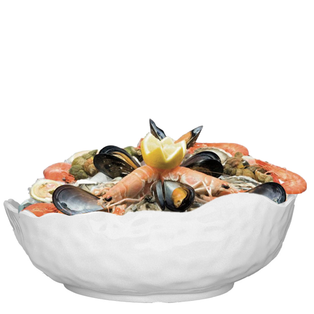 White melamine seafood tray designed for practical and visually appealing presentations.