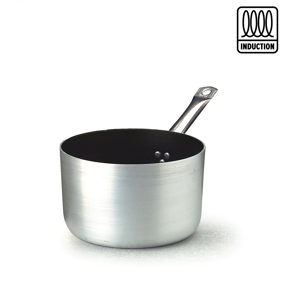Non-stick aluminium saucepan for induction hobs with 1 handl