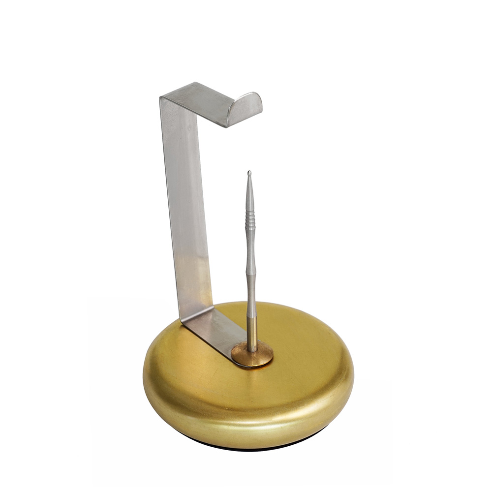 The order holder consists of a brass base with an internal weight that ensures stability, and a steel spike protected by a flexible stainless steel bracket that prevents unpleasant accidents during use.