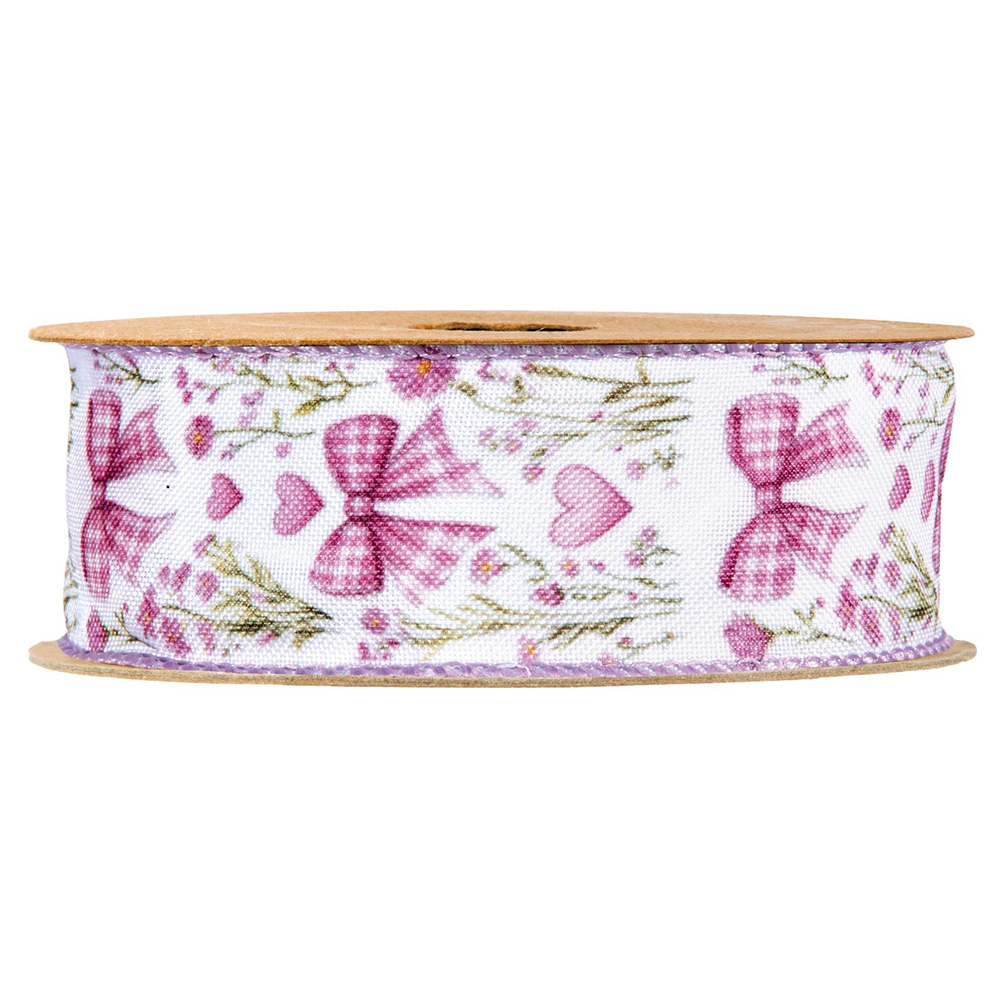 Ribbon with bows and hearts in printed polyester fabric, with wired edges Dimensions: 40 mm x 10 m