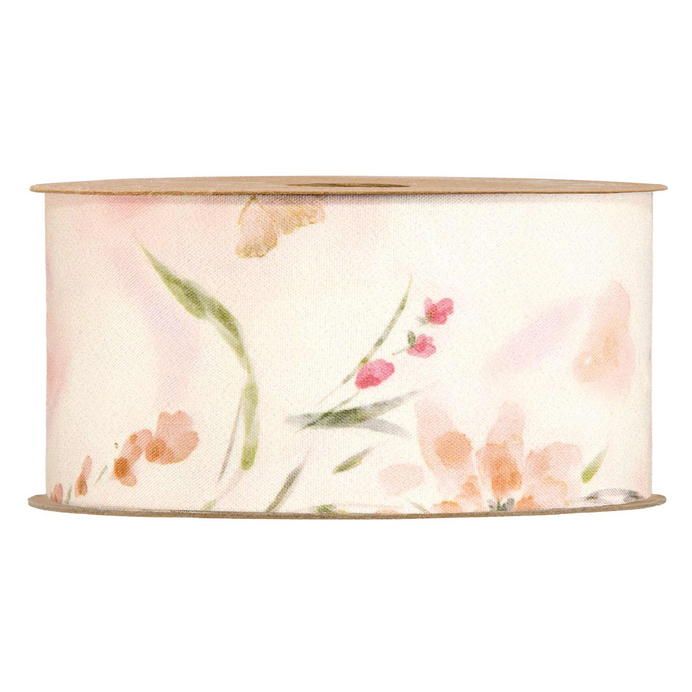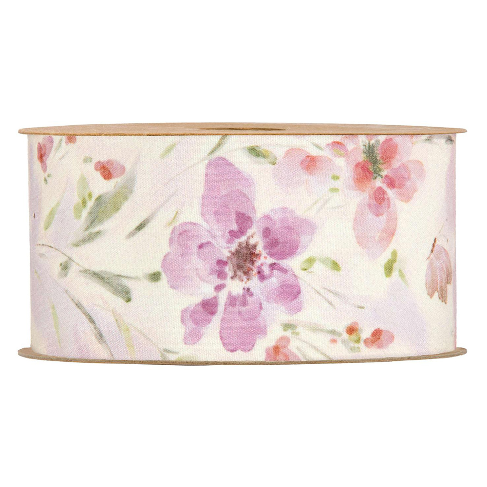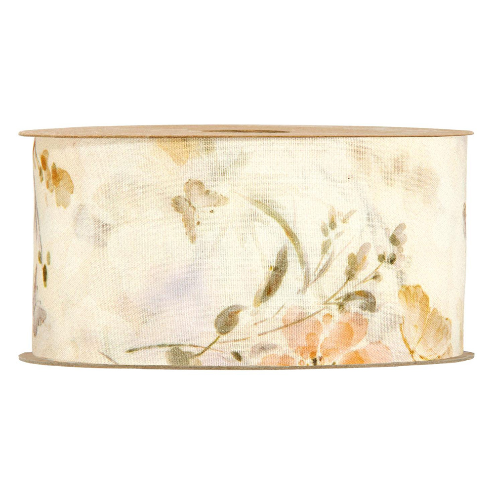 Ribbon with flowers and butterflies in printed polyester fabric Dimensions: 50 mm x 15 m
