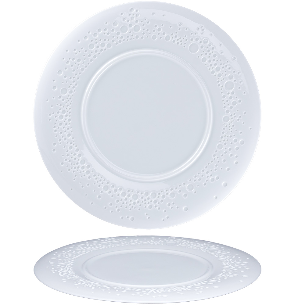 Round bubbles Feelings plate in bone china.