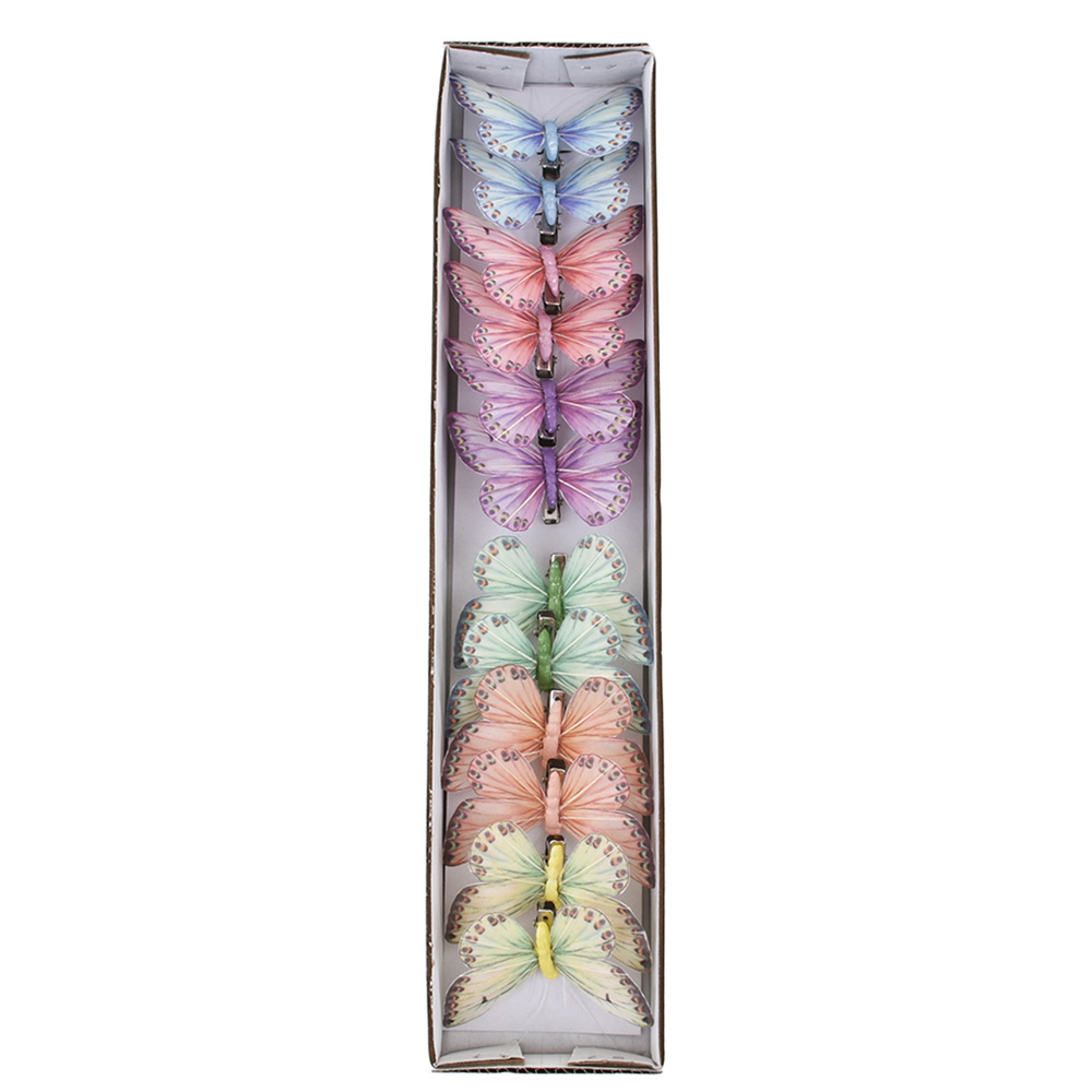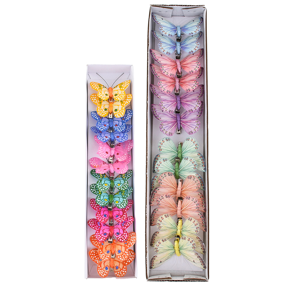 Set of 12 feather butterflies on clip, assorted colors