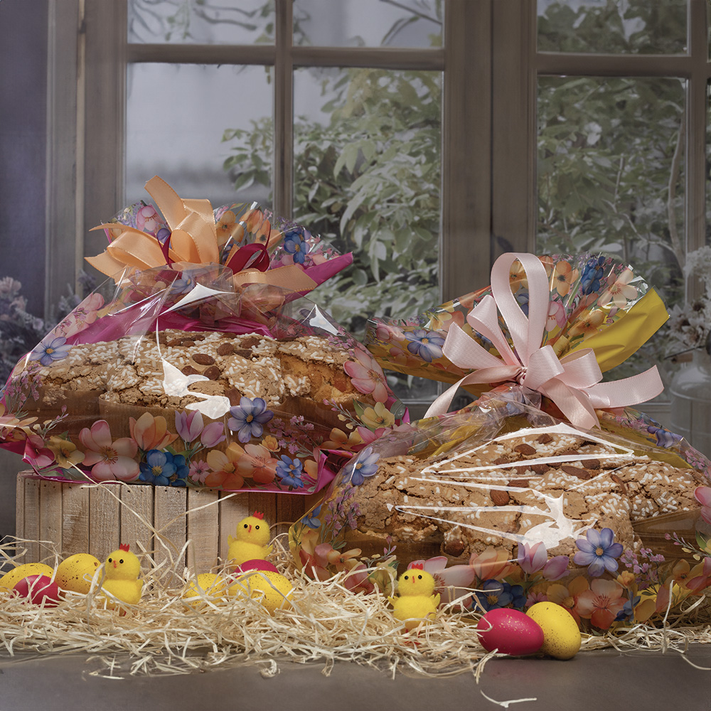 Set of 25 “Spring Time” polypropylene bags, with solid flat base and coloured transparent upper part.