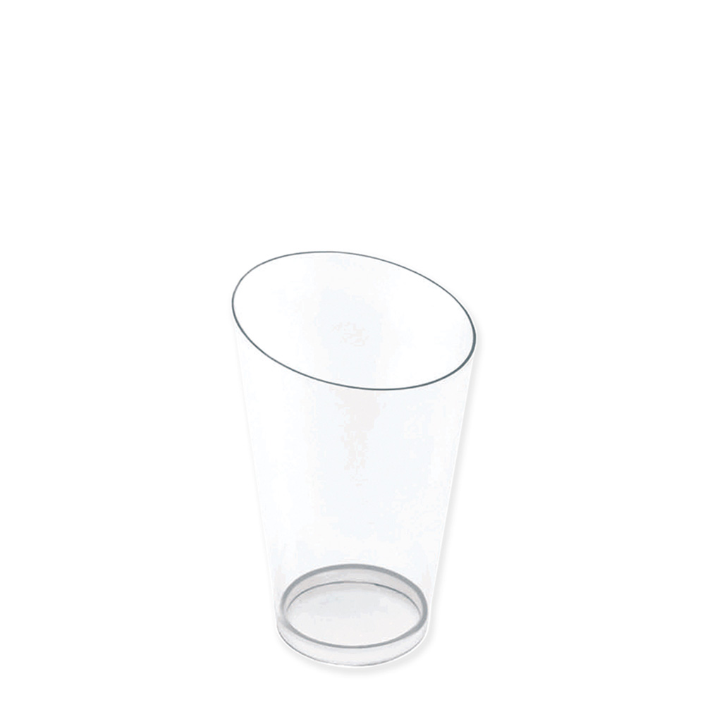Set of 250 tall transparent conical cups. Dimensions: Ø 50 mm - 75 cc Ideal for finger food, catering services and aperitifs. Recyclable PS06 material