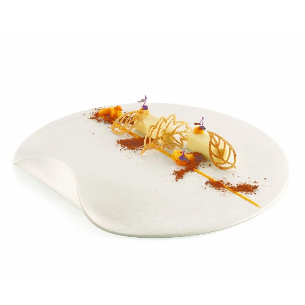 The mat can be used with tuile or chocolate to create elegant and refined decorations.