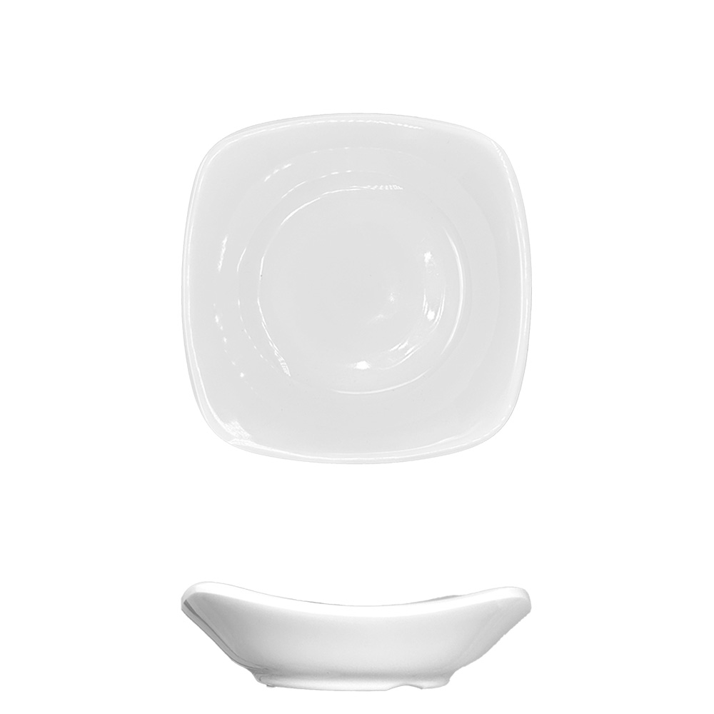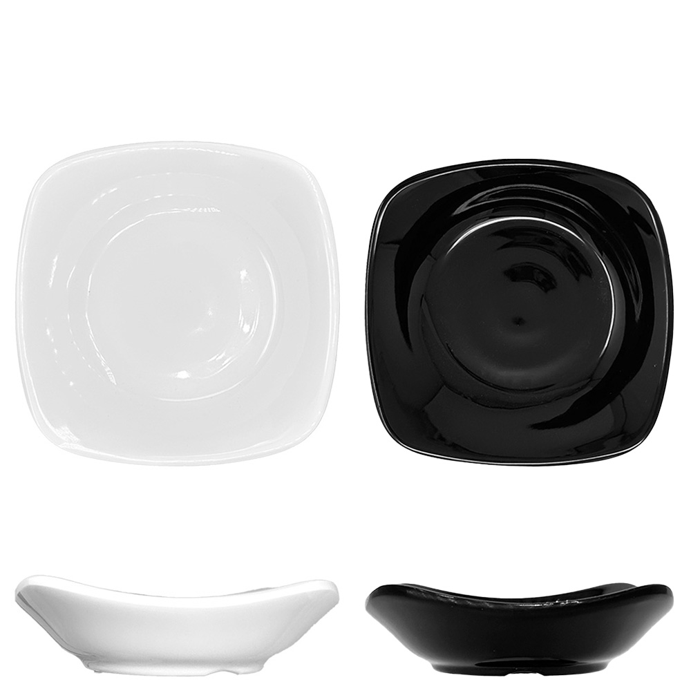 Available in black and white, this square melamine bowl perfectly complements any table setting.