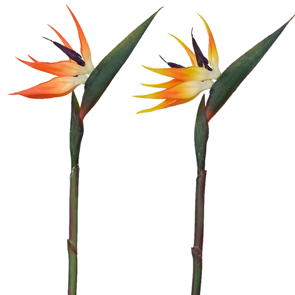 Strelitzia flower in rubberized polyester with leaves, in 2 assorted colors Dimensions: 23 x 4 x 98 cm height