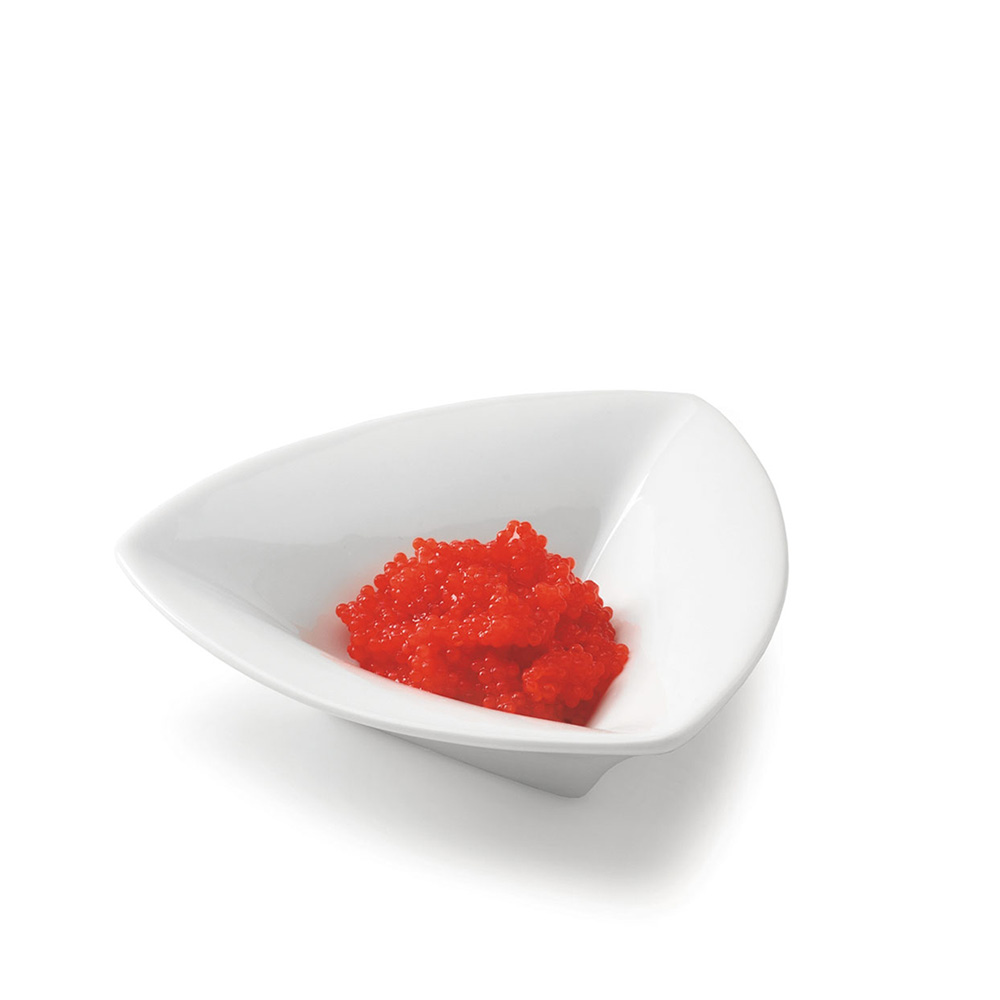 Triangular bowl from the Party line, made of white porcelain. Dimensions: cm 10