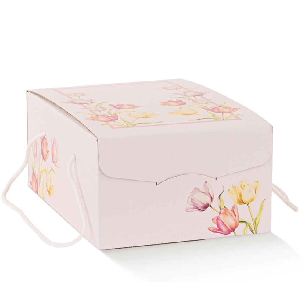 Tulips “Secret” Colomba Box, made of printed cardboard, with cord handles and concealed front closure.