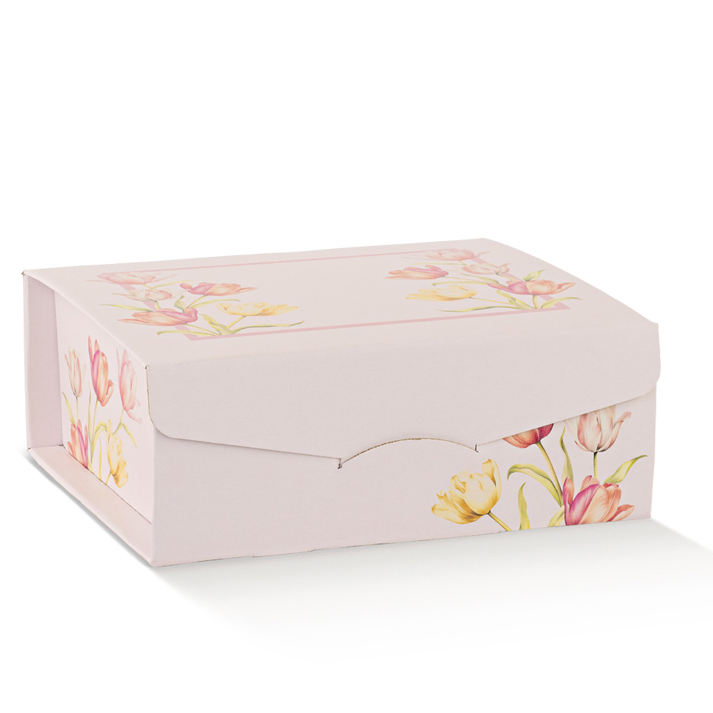 Tulips Square Box, made of printed cardboard, with concealed front closure Size: cm 23 × 23 × 10 h