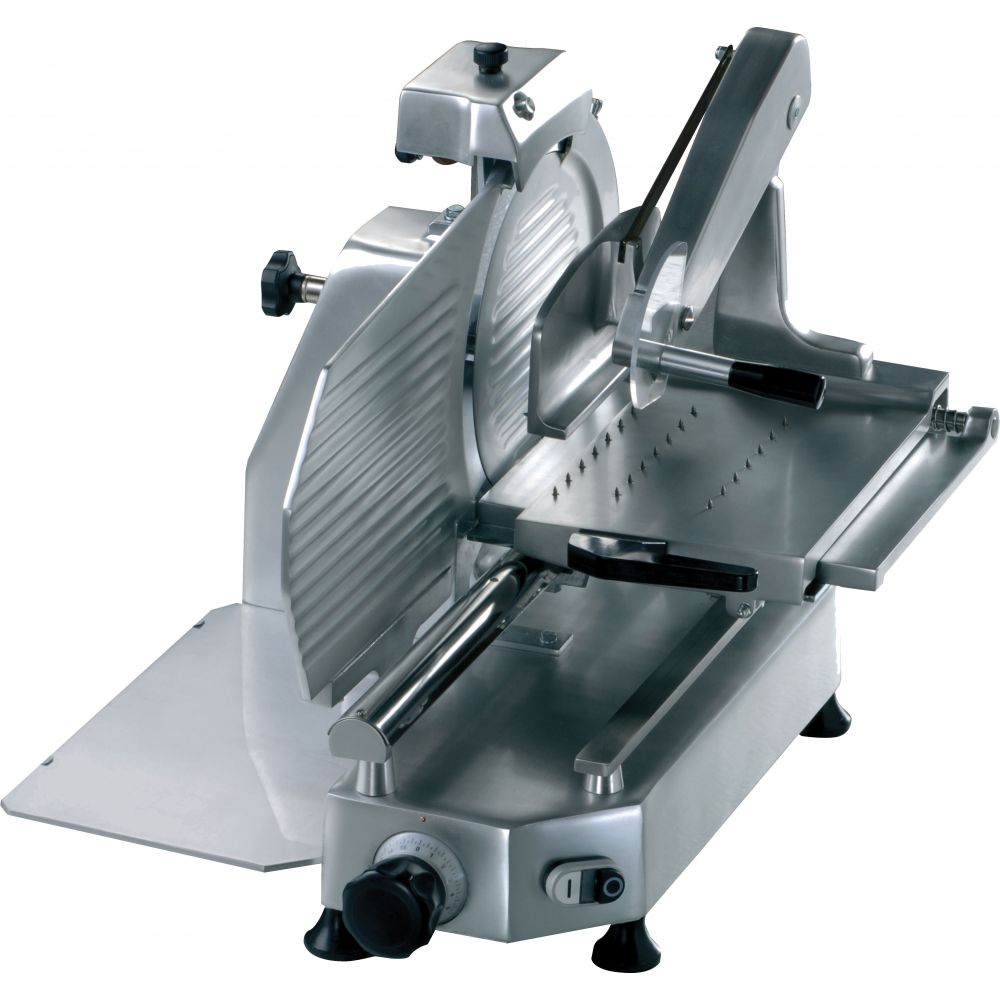 Made of aluminum alloy, anodically treated, they are easy to clean. The cutting thickness regulator from 0 to 16 mm is very sensitive and allows a decimal adjustment. The easy-to-assemble sharpener simplifies the user's work while maintaining the perfect cut efficiently. The plate mounted on ball bearings has exceptional smoothness and allows you to cut heavy cured meats, roasts, cheeses, fish, tough meats and more. Available single-phase and three-phase on request
