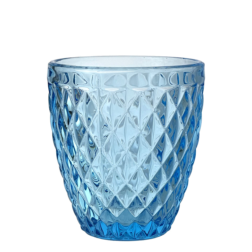 The Vienna glass combines elegance and durability in a design that feels both retro and timeless. Made of thick, resistant glass, it features a distinctive faceted texture that beautifully catches the light, creating elegant reflections.