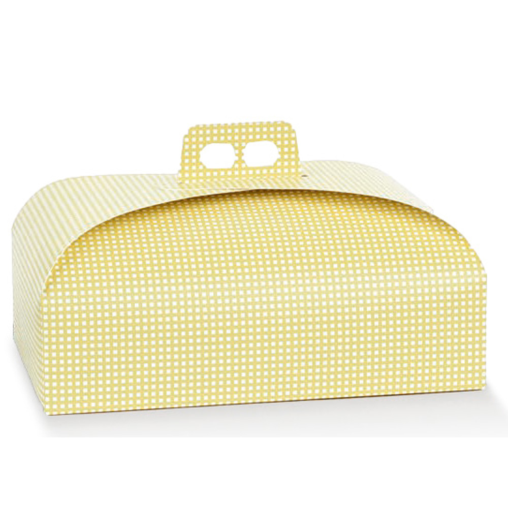 Yellow Vichy Colomba Box, made of printed cardboard, with top handle Ideal for packaging a 750 g colomba cake. Size: cm 33.5x23.5x14 h