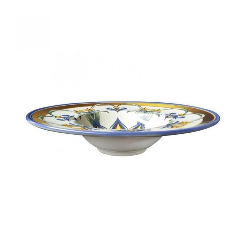 Beautiful deep plate of the Bizancio Line. The plate has a relief decoration, with calm and harmonious colors. They adapt to various types of tables, thanks to the many shapes that the line offers.
