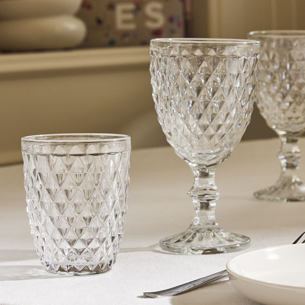 Diamond-Effect Goblet in Clear Glass Capacity: 30 cl Dimensions: 9×17 cm