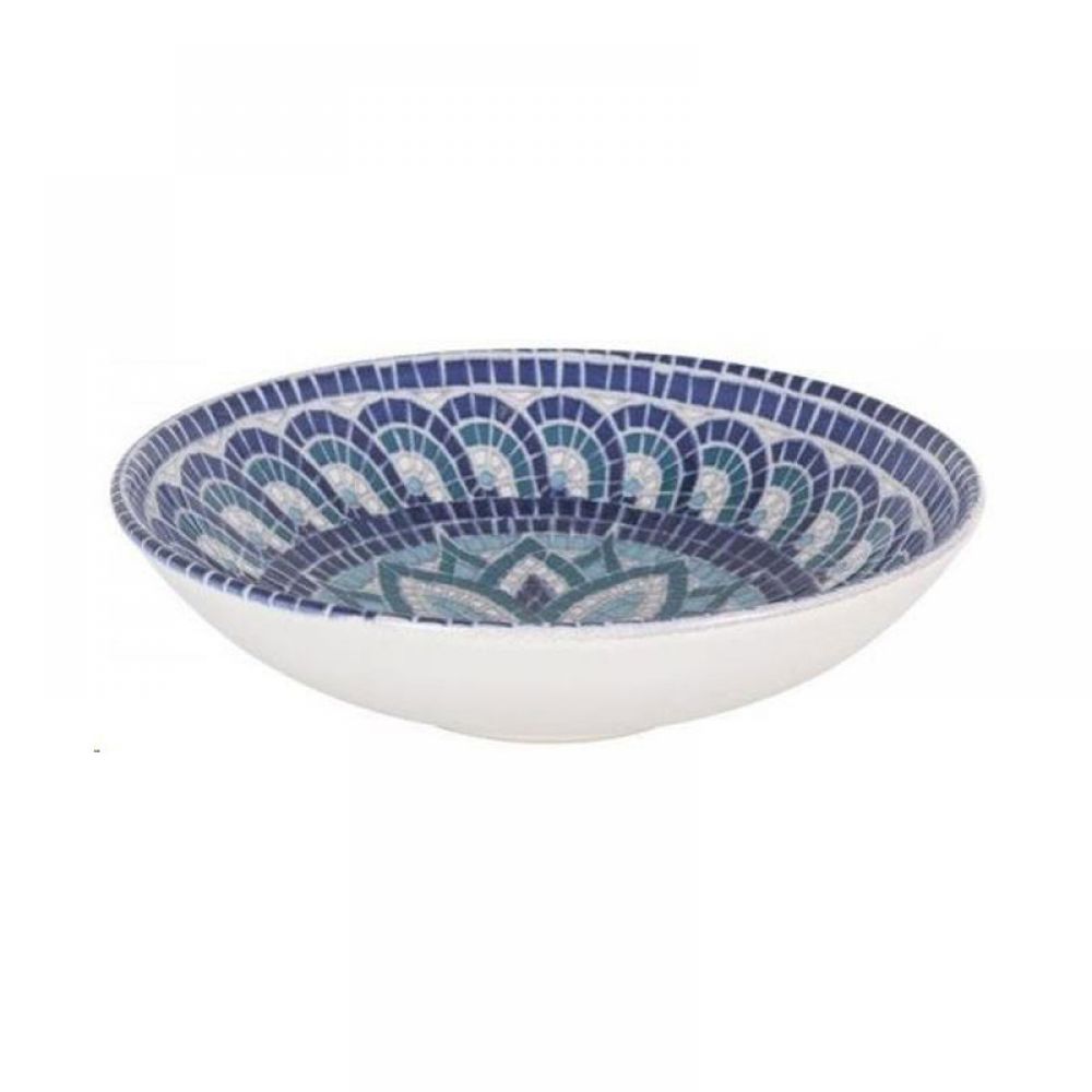 Plate with relief decoration, characterized by a blue Mayolica in mosaic style. The 19.5 cm round deep plate completes the square line in a simply unique way! Discover the whole Mayolica line.