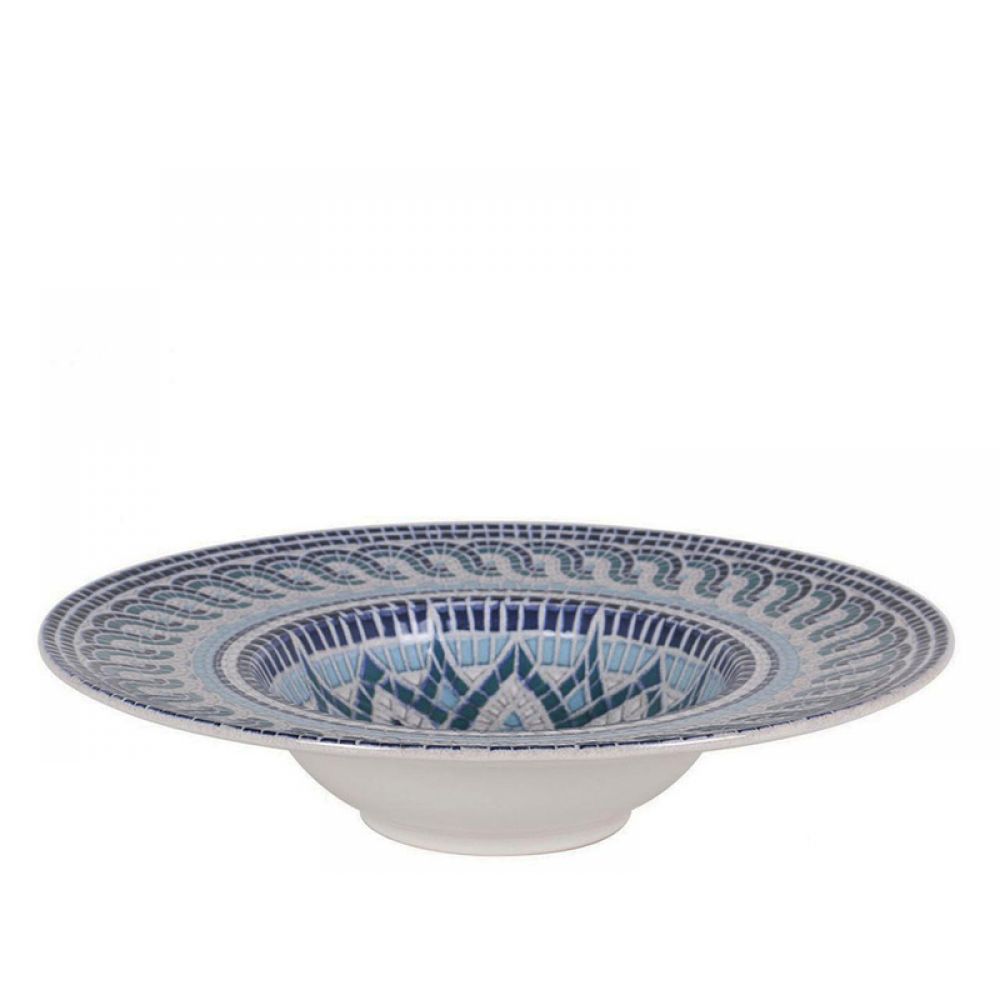 Plate with relief decoration, characterized by a blue Mayolica in mosaic style. Make it the frame of your dishes, even the most gourmet ones. Discover the whole Mayolica line.